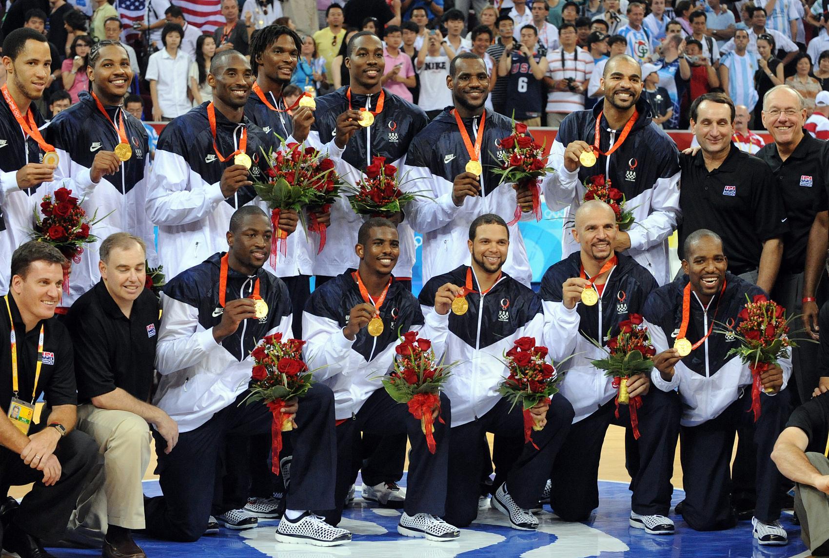 而2008年的这支队伍以科比-布莱恩特、勒布朗-詹姆斯、德维恩-韦德、卡梅隆-安东尼和杰森-基德为核心,他们肩负的任务是带领美国男篮走出一段令人不安的低谷,这不仅包括上届奥运会(2004年雅典奥运会上的惊人失利),也包括其在2002年和2006年国际篮联世锦赛上的尴尬挫败。