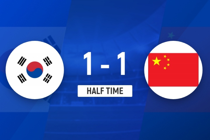 上半场补时3分钟,韩国女足1-1中国女足。
