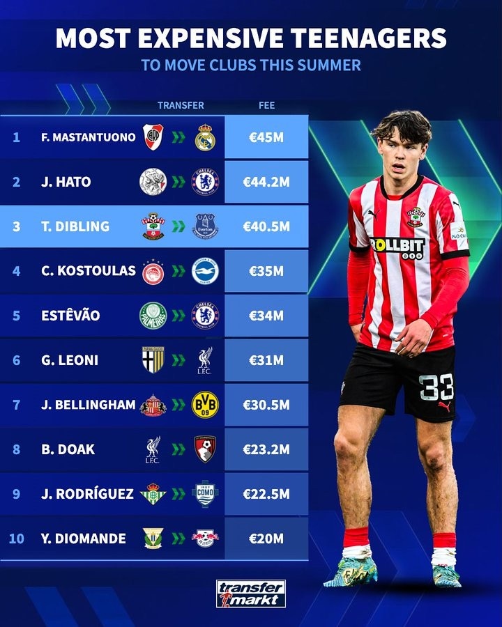 体育app-今夏U19球员转会费榜单:马斯坦托诺以4500万欧元领跑